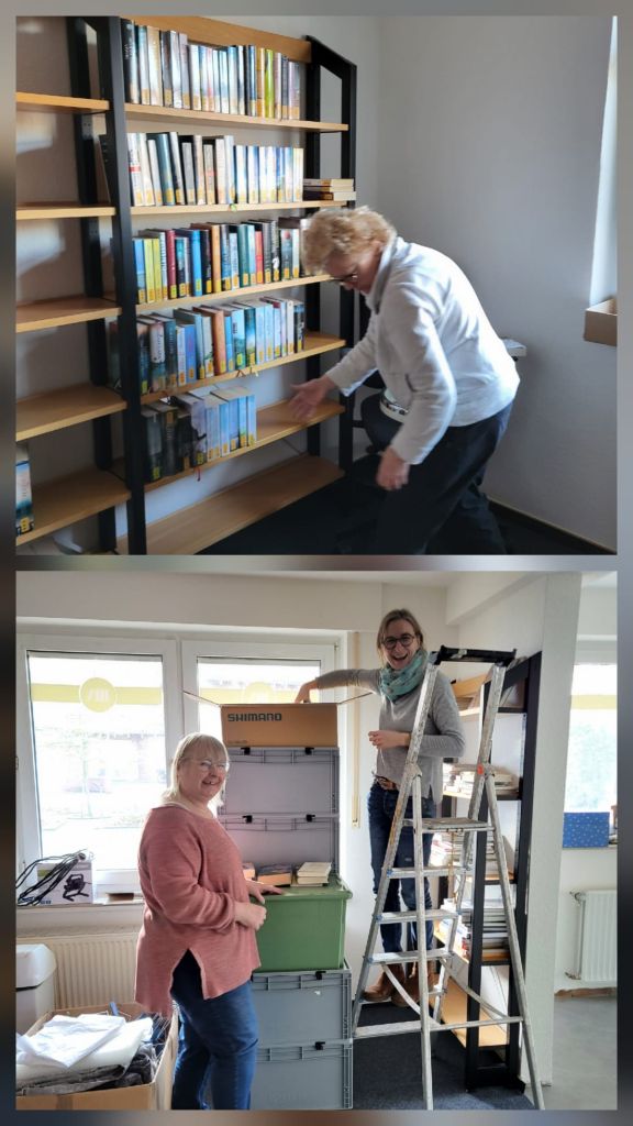 Jede Untergruppe (Romane / Sachbücher / Kinderbücher / Jugendbücher / Spiele / CD’s) hat sich getroffen, um ihre Medien wieder zurück in die Regale zu stellen, bzw. zu legen.